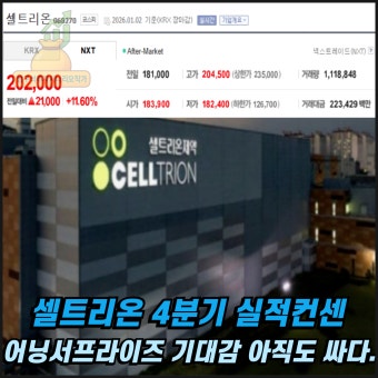 - 글로벌 지정학적 리스크와 '트럼프 쇼크': 트럼프의 강경 발언으로 인해 안전자산 선호 심리가 강해지며 외국인들이 코스피 시장 전체에서 3.7조 원이라는 기록적인 매도세를 보였고, 셀트리온도 그 파도를 피하지 못했습니다.