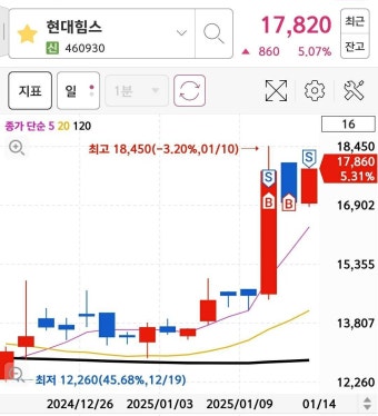 | 현대힘스 | 19,830 | +1,810 | +10.04% |
