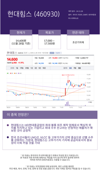 오늘 현대힘스가 강세를 보인 이유는 크게 세 가지로 요약해 볼 수 있습니다.