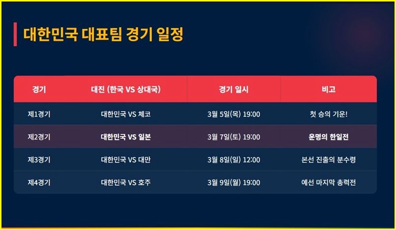 가장 긴장되는 첫 경기는 3월 5일 목요일 19시에 열리는 체코전으로 결정됐습니다.